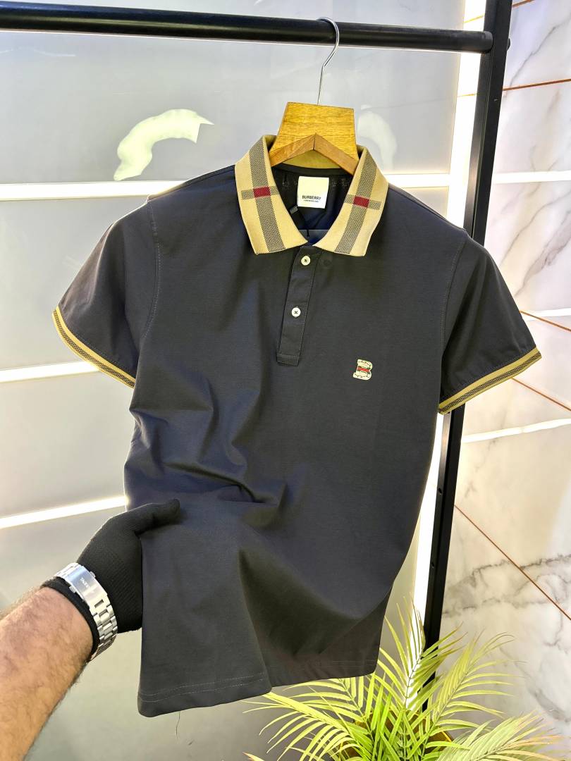 Burberr y Logo Dark Grey Collar Neck Premium Polo T-shirt F2593-DGY