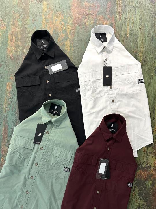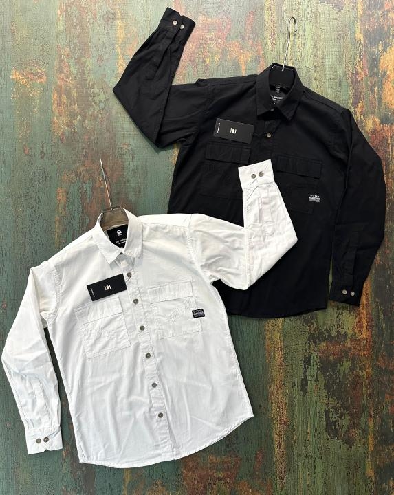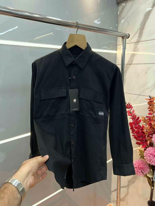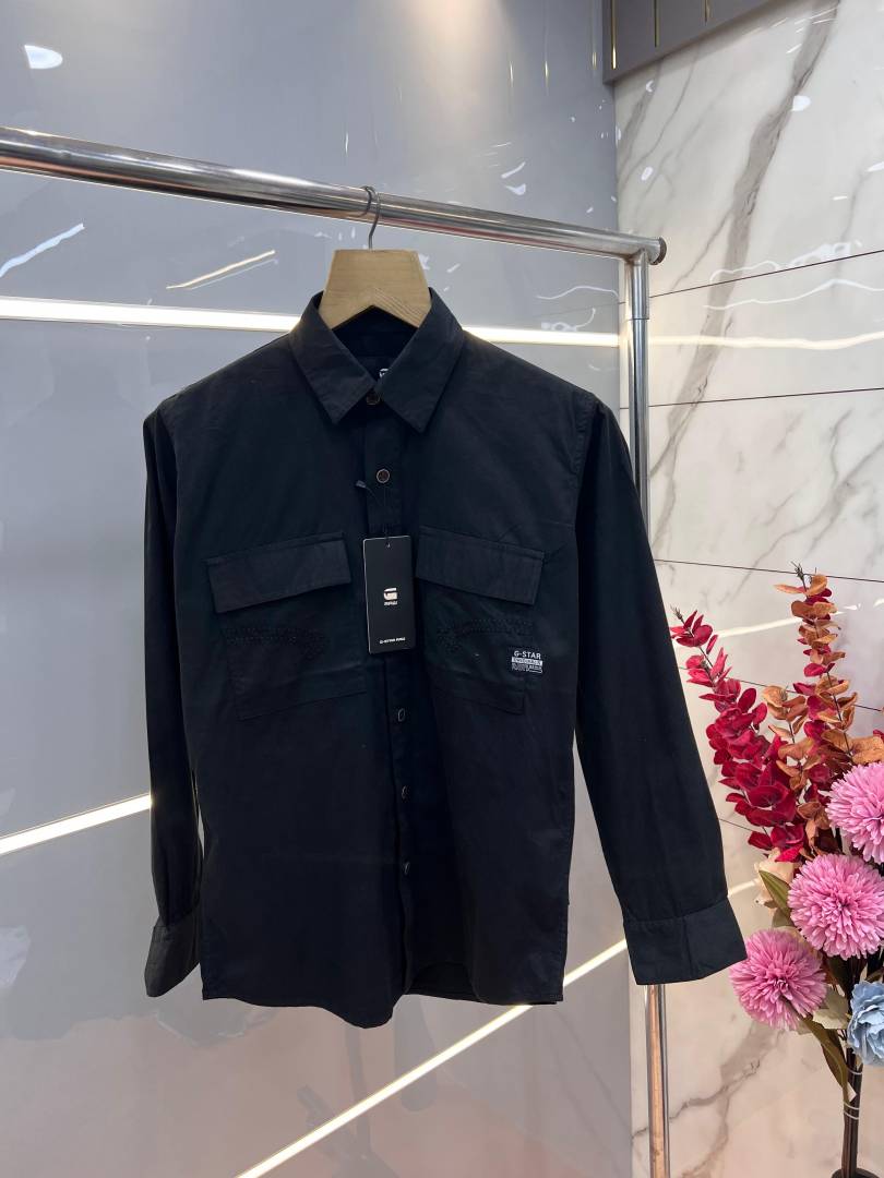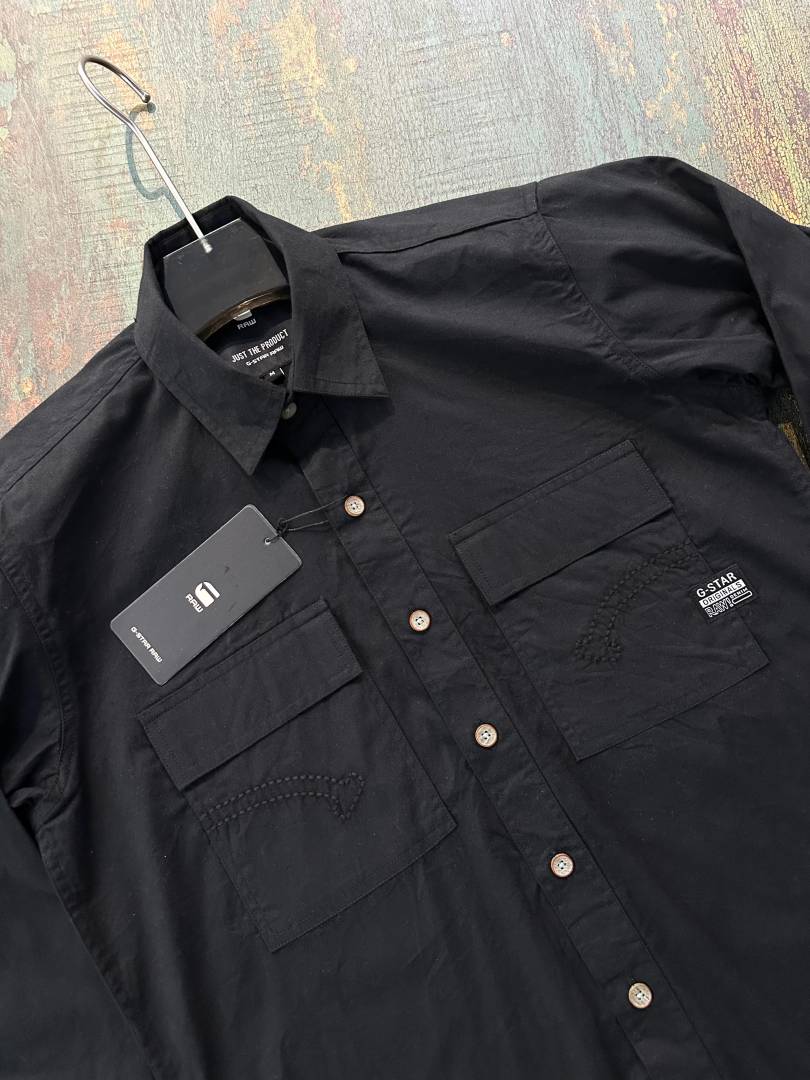 Gsta r Black Premium Shirt Cotton Fabric With custom Branded Button Tagging And Brand Poly Bag 3151