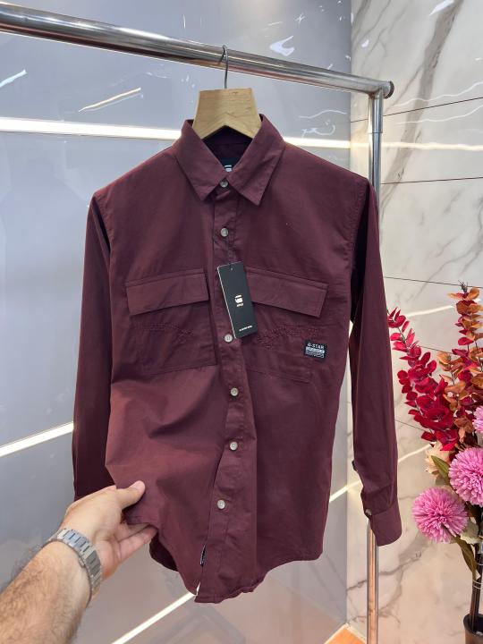 Gsta r Maroon Premium Shirt Cotton Fabric With custom Branded Button Tagging And Brand Poly Bag 3150