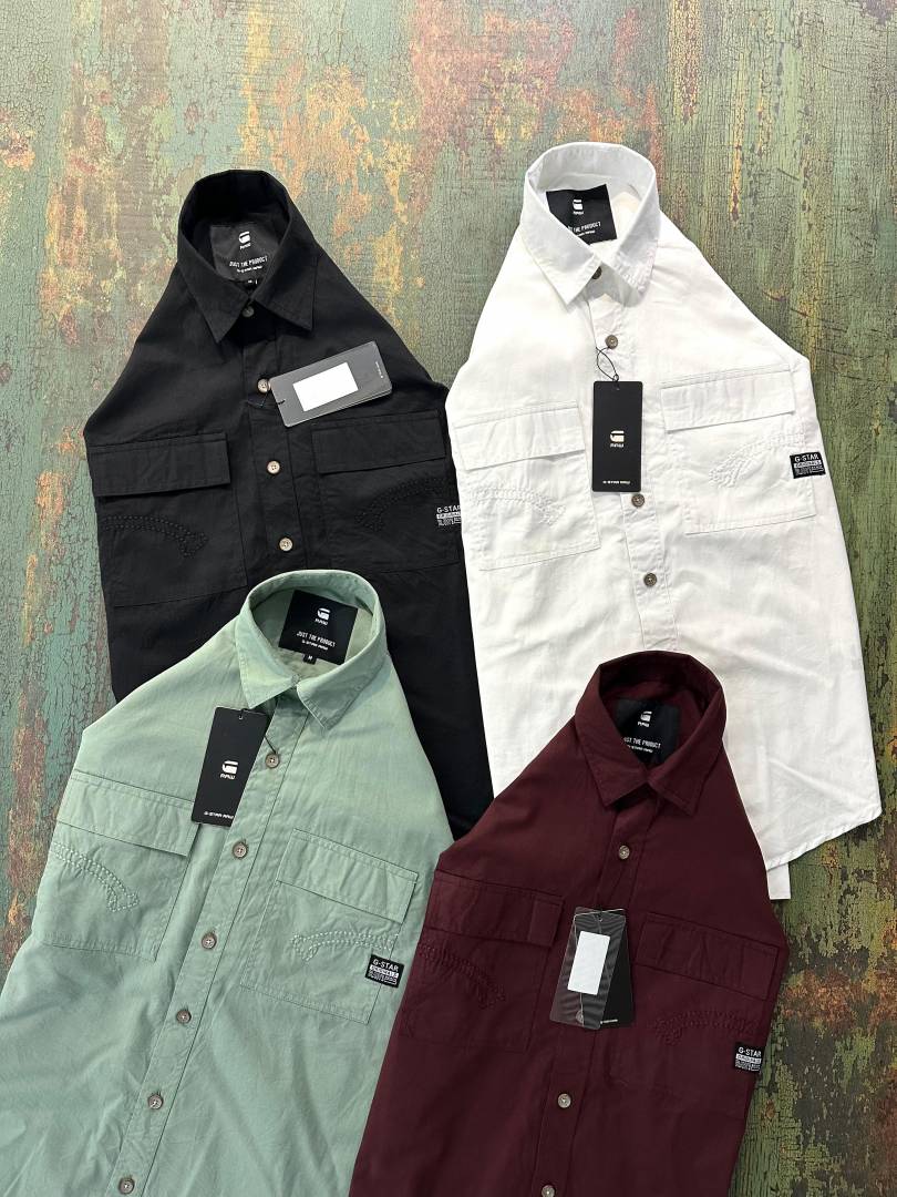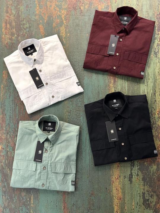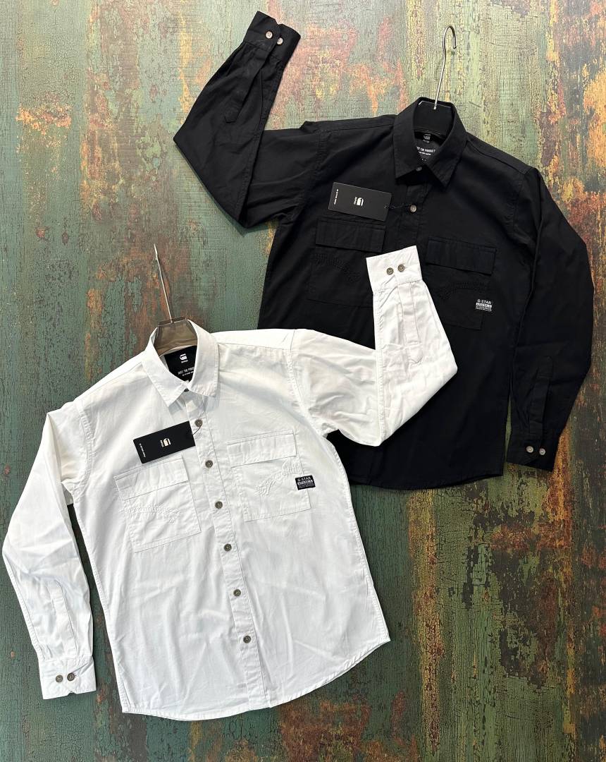 Gsta r White Premium Shirt Cotton Fabric With custom Branded Button Tagging And Brand Poly Bag 3152