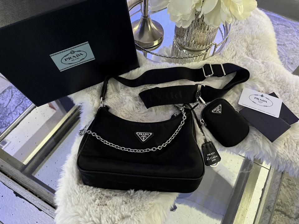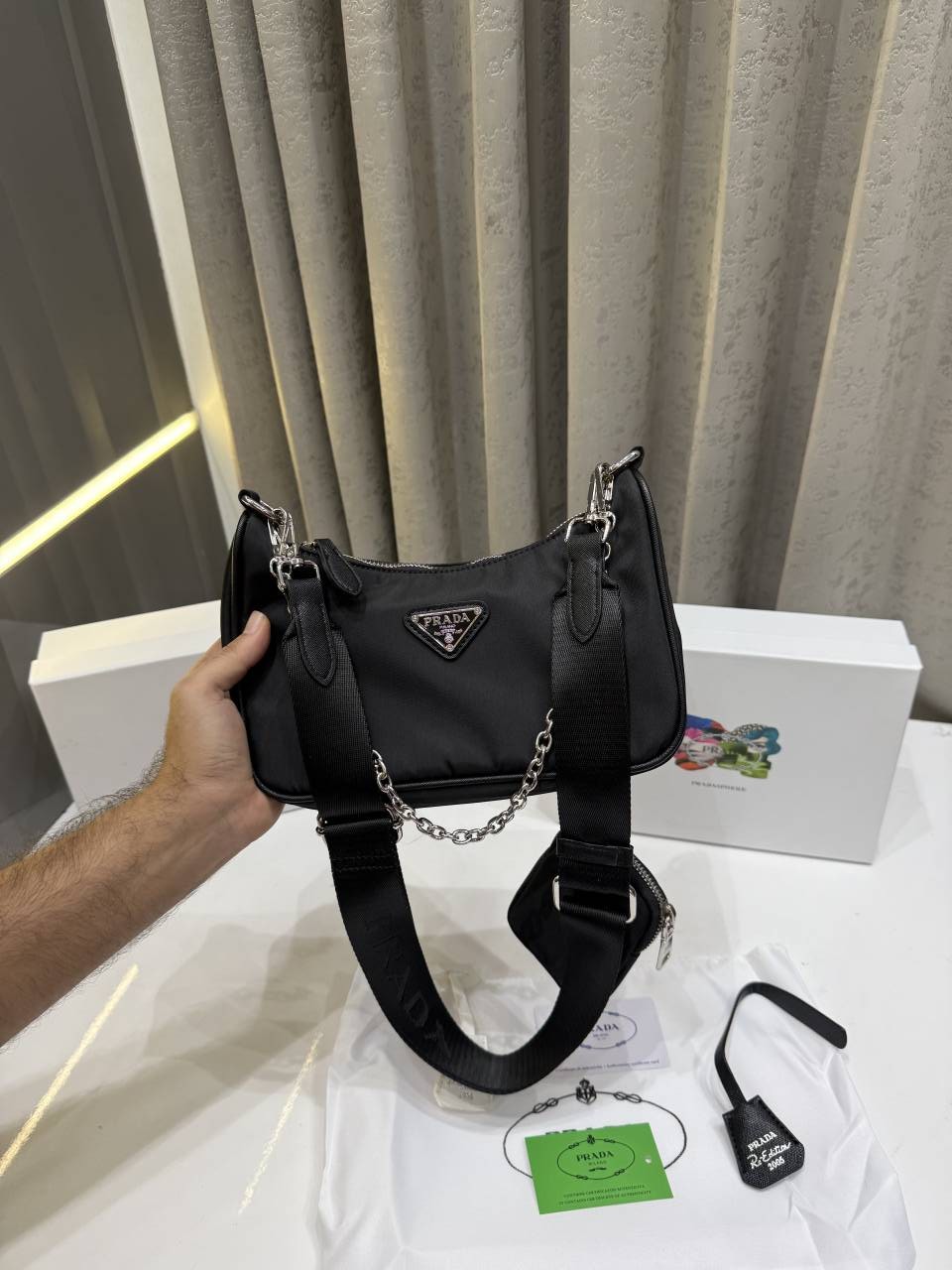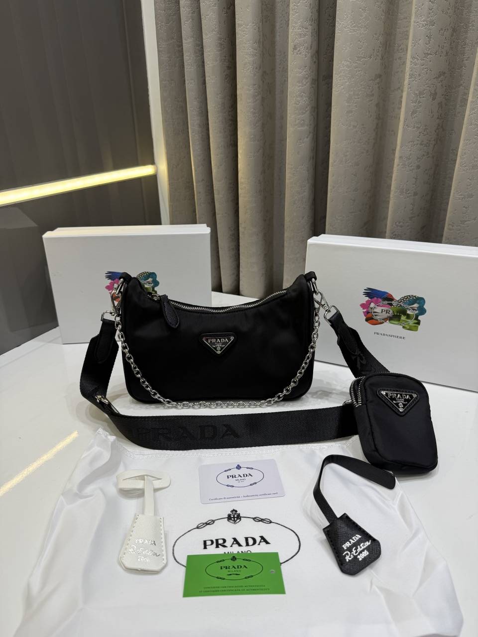 PRAD.A RE-EDITION BLACK POCHETTE CROSS BODY BAG WITH OG BOX