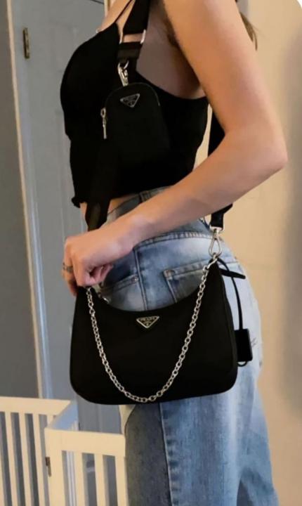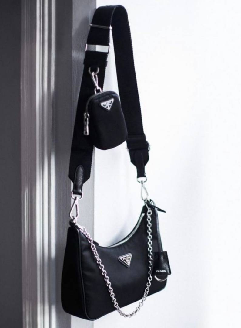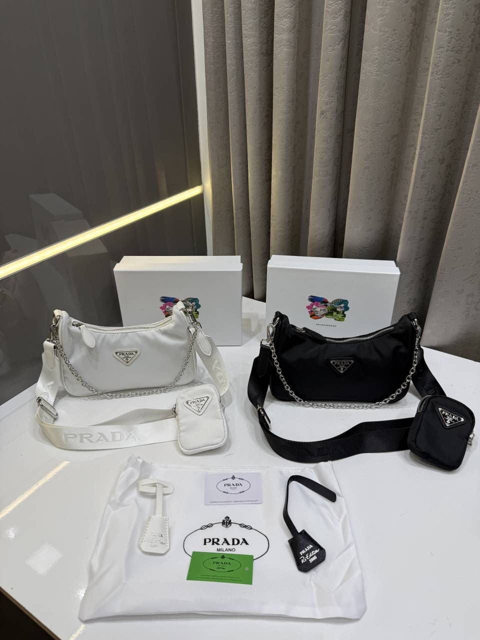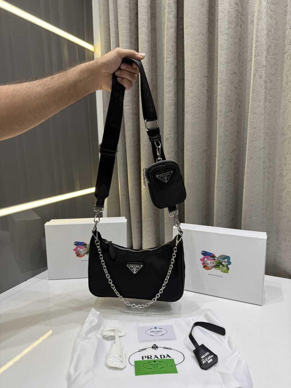 PRAD.A RE-EDITION BLACK POCHETTE CROSS BODY BAG WITH OG BOX